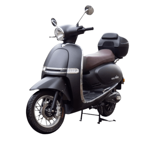 Le E-presto est un scooter électrique équivalent 50cc. Son design vintage, combiné a sa fiabilité et son confort font de lui un partenaire idéal au quotidien. Grâce à sa batterie de 72 Volts et 56 Ah, le scooter électrique e-presto pourra parcourir les distances suivantes : 90 km en conduite sportive 110 km en conduite économique Les autonomies annoncées ont été testées par nos soins sur route avec une personne de 75 kg. Puissance 3000 Watts Vitesse 45km/h Autonomie 110km